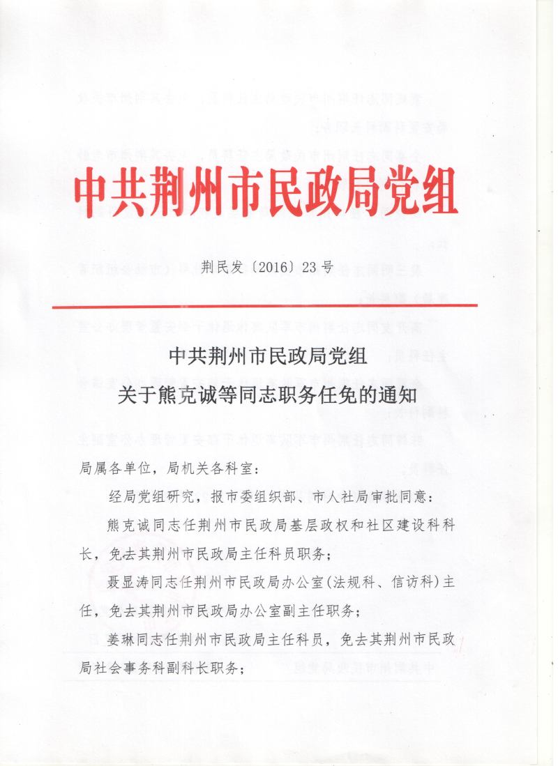 中共www.bt365.com党组关于熊克诚等同志职务任免的通知